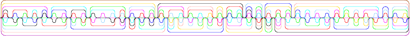 The necklaces in the following table are assigned to the vertices of the lattice left-to-right at a given level. The density of the necklace increases in the lattice from top-to-bottom. For example, there is an edge in the lattice from face #2 to face #7, corresponding to necklaces 11000000000 and 11100000000. Face #2 is the unique dual vertex at level 2, and face #7 is the leftmost dual vertex at level 3. Since these necklaces differ at bit position 3, the edge between them represents curve 3. To check that the diagram is correct one needs to (a) verify that adjacent vertices correspond to adjacent necklaces, and (b) that all the necklaces are rotationally distinct.